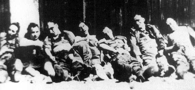 Żołnierze NZW z patrolu por. Wacława Grabowskiego „Puszczyka” polegli w walce stoczonej 5 lipca 1953 r. z 1300-osobową grupą operacyjną UB-KBW we wsi Niedziałki na Mazowszu. Od lewej leżą: Henryk Barwiński „August”, Kazimierz Żmijewski „Jan”, Lucjan Krępski „Jastrząb”, Feliks Gutkowski „Gutek”, Piotr Suwiński „Stanisław”, por. Wacław Grabowski „Puszczyk”, Antoni Tomczak „Malutki”. Zdjęcie wykonane przez UB. Miejsce Ich pochówku do dzisiaj pozostaje nieznane.