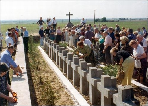 „Czas i miejsce naszego modlitewnego spotkania mają wymiar historyczny. Trafi ono bowiem nie tylko do historii rodzin przybyłych tutaj poległych żołnierzy AK, do historii ziemi lidzkiej. Stanie się początkiem zapisu nowego historycznego rozdziału niepodległej Rzeczypospolitej Polskiej i stojących na progu niepodległości Białorusi i Litwy. 47 lat temu na tej polanie rozegrał się jeden z największych dramatów wojennych. Siły bezpieczeństwa ZSRR uderzyły na tkwiący w obronie poczet ppłk. «Kotwicza». Bój był nierówny, oddział polski został pokonany. Do 13 poległych w walce akowców doszło ponad 20 dobitych bagnetami i kolbami. Rzucono ich w to miejsce. Trzykrotnie przyjeżdżały różne komisje. Wydobywano trupy, aby sprawdzić, czy jest wśród nich «bezrukij major». Niestety był. 47 lat w tej niepoświęconej ziemi czekali na katolicki pochówek. Mówię to dlatego, iż przed nami nowy rozdział historii, nowe zapisywanie naszych przyjaźni z narodami Litwy i Białorusi. Przyjechaliśmy z ziemi polskiej, na której znajduje się 475 cmentarzy wojennych żołnierzy radzieckich. Pochowaliśmy ich godnie i pięknie. Postąpiliśmy tak, gdyż śmierć łagodzi urazy i nakazuje tak nasza wiara. Ten cmentarz pozostanie pod opieką ludności zawsze wiernej Polsce i, miejmy nadzieję, także obecnych gospodarzy tej ziemi. Proszę was, gospodarze, bądźcie ludzcy dla tych, których powierzamy waszej opiece. Niech odpoczywają w spokoju”.