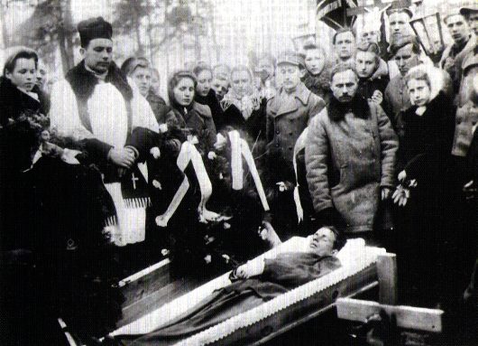 Pogrzeb kpr. Dionizego Kolesińskiego „Sęka” z 2 kompanii IV batalionu 77 pp AK, poległego w walce z sowietami 5 marca 1944 r. pod Filonowcami.