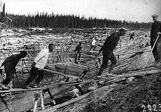 Więźniowie pracujący w Gułagu.