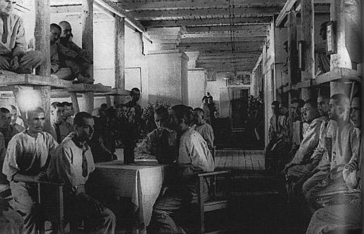 Wnętrze obozowych baraków.