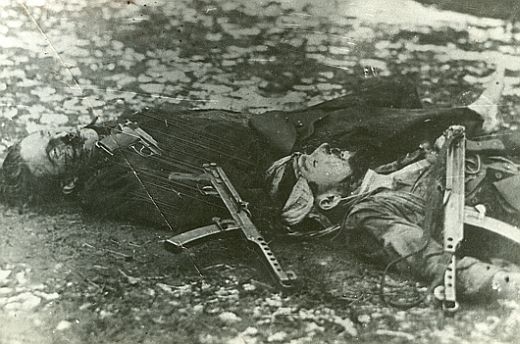 Tu i poniżej kilku z tysięcy „beneficjentów” przyniesionej Polakom przez Armię Czerwoną „wolności”. Partyzanci z oddziału st. sierż. Mieczysława Dziemieszkiewicza „Roja”