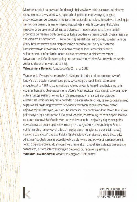 PS. 1) Osoby zainteresowane publicystyką Józefa Mackiewicza zachęcam do lektury książki Grzegorza Eberhardta, Pisarz dla dorosłych. Opowieść o Józefie Mackiewiczu (Biblioteka Solidarności Walczącej, Wydawnictwo "Lena", Wrocław 2009, wydanie II, rozszerzone – Wrocław 2010). Czytelnik znajdzie w niej m.in. wiele fragmentów nieznanych szerzej publikacji autorstwa Mackiewicza.