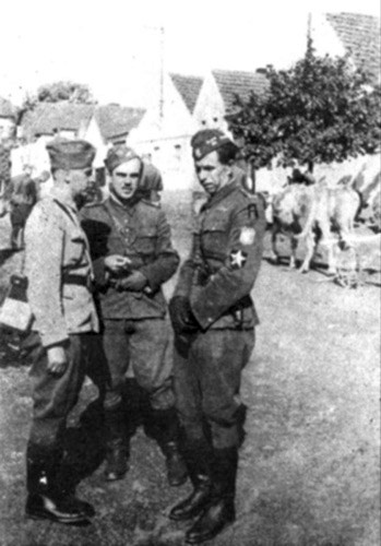 Oficerowie Brygady Świętokrzyskiej NSZ we Vsekarach (Czechy), maj 1945 r. Z prawej płk Antoni Szacki "Bohun", "Dąbrowski", dowódca Brygady, w środku mjr Leonard Zub – Zdanowicz "Ząb", z lewej mjr Stefan Marcinkowski "Poraj", "Poraj Karol", "Wronicz".