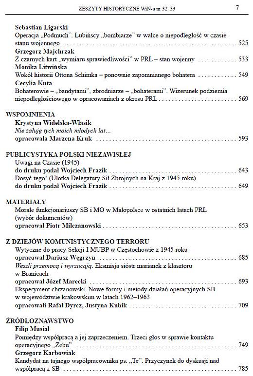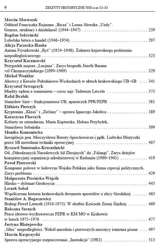 W zeszłym roku wespół z Januszem Kurtyką redakcja podjęła decyzję o poszerzeniu spectrum tematów obecnych na łamach naszego pisma. Dziś podtrzymujemy w całej rozciągłości deklaracje zawarte we wstępie do numeru 31. „Zeszytów”. Pragniemy, aby nasz periodyk był nadal miejscem, gdzie sąsiadują ze sobą teksty doświadczonych badaczy i debiutujących adeptów historii. Liczymy, że na jego łamach znajdą miejsce autorzy, którym na sercu leżą sprawy wolności badań naukowych i rzetelnego uprawiania krytyki historycznej. Na problemy te zwracał wielokrotnie uwagę Janusz Kurtyka. Podejmując wysiłek wydawania „Zeszytów” bez Niego, będziemy dążyli do realizacji bliskich Mu cnót naukowych.