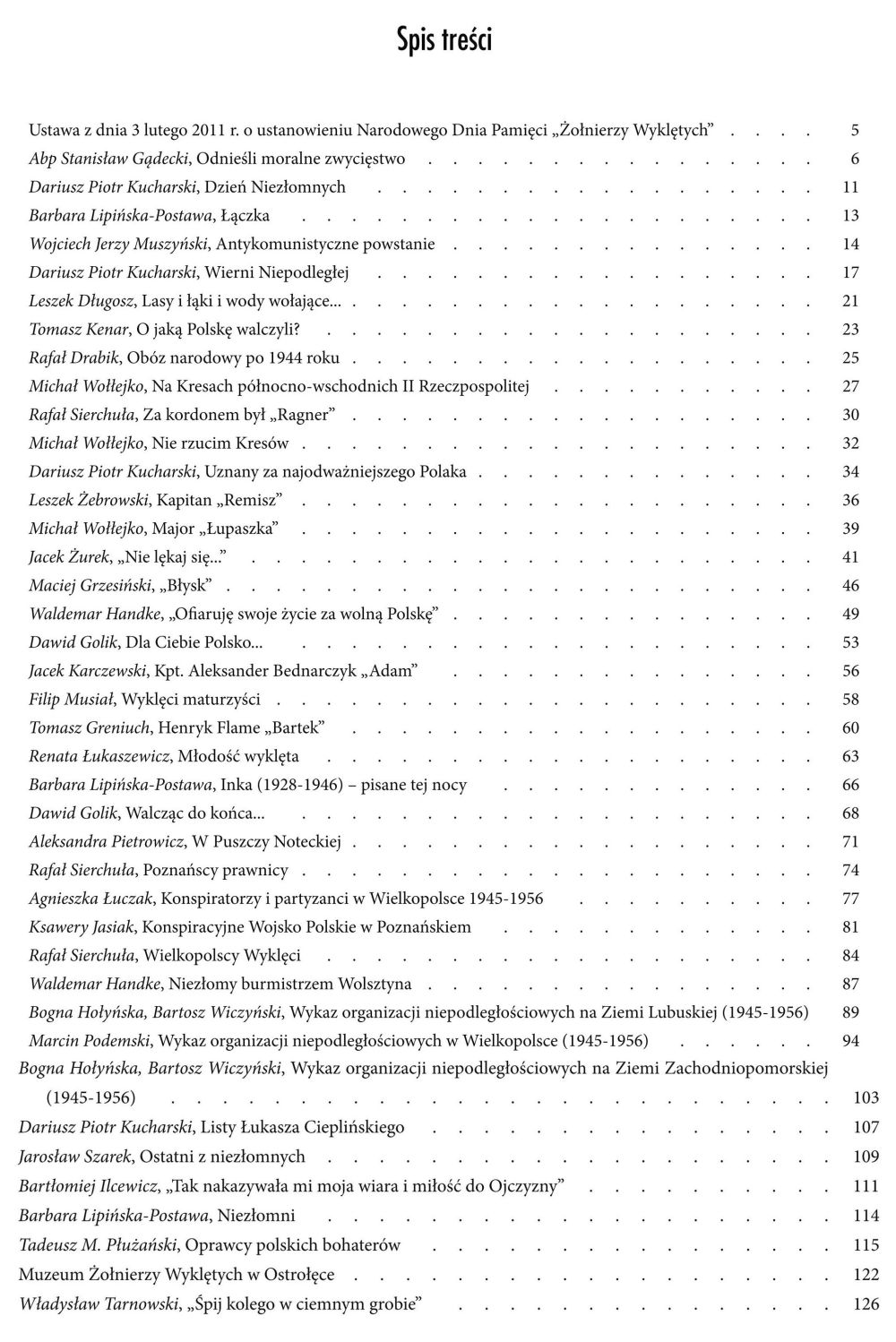 Autorzy: Leszek Długosz, dr Rafał Drabik, abp Stanisław Gądecki, Dawid Golik, Tomasz Greniuch, Maciej Grzesiński, dr hab. Waldemar Handke, Bogna Hołyńska, Bartłomiej Ilcewicz, dr Ksawery Jasiak, Jacek Karczewski, dr Tomasz Kenar, dr Dariusz Piotr Kucharski, Barbara Lipińska-Postawa, dr Agnieszka Łuczak, Renata Łukaszewicz, dr hab. Filip Musiał, dr Wojciech Jerzy Muszyński, Aleksandra Pietrowicz, Tadeusz M. Płużański, Marcin Podemski, dr Rafał Sierchuła, dr Jarosław Szarek, Władysław Tarnowski, Bartosz Wiczyński, Michał Wołłejko, Leszek Żebrowski, dr Jacek Żurek.