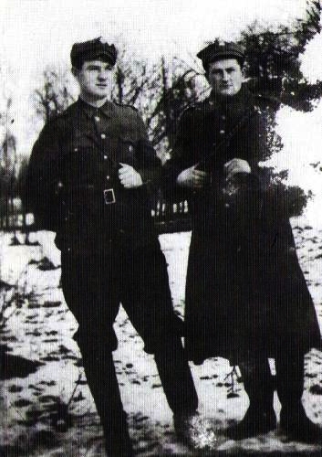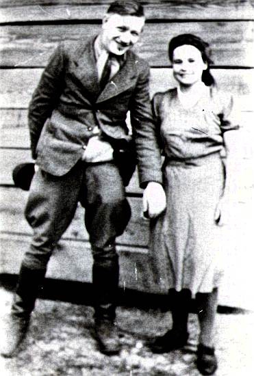 Por. Leon Taraszkiewicz „Jastrząb” z łączniczką Mielniczukówną za Zbójna. 1946 r.