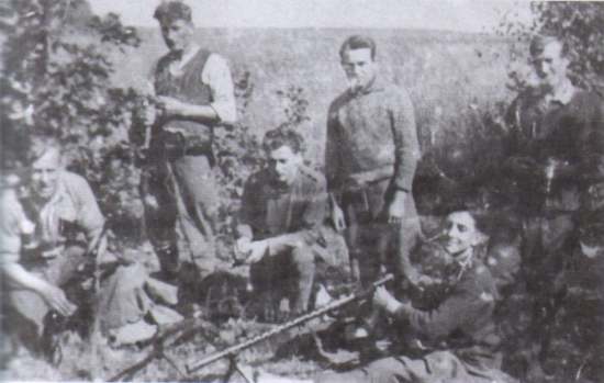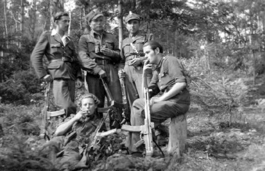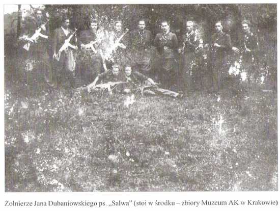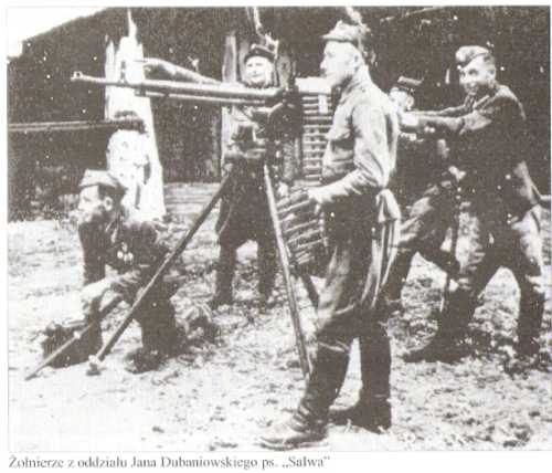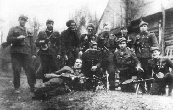 Ujawnienie, Suwałki, kwiecień 1947. Od lewej stoją: Marian Andryszczyk ps. "Lawa", Zygmunt Wiśniewski ps. "Mały", ps."Burza" i Mieczysław Kleszczewski ps. "Wyrwa". Siedzą: Witold Andruszkiewicz ps. "Świerk", Wacław Górski ps. "Oko", "Gabryś", "Kaczuk" i Franciszek Miluć ps. "Karp".