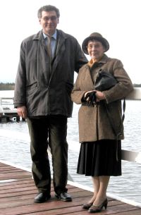 Sławomir Jarosiński oraz Lidia Lwow – Eberle w miejscu dawnej leśniczówki nad Jeziorem Omulew, 19 października 2007 r.