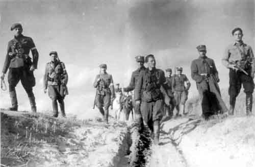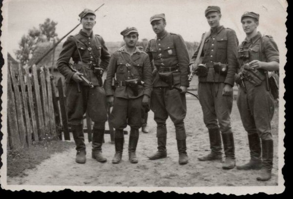Prawdopodobnie rok 1948. VI Brygada Wileńska AK. Spotkanie żołnierzy kpt. Kazimierza Kamieńskiego "Huzara" i Władysława Łukasiuka "Młota". Na pierwszym planie kpt. "Młot".