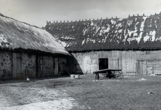 Zabudowania gospodarcze Apolinarego Grabowskiego. Z lewej chlew, pod którym znajdował się schron ppor. "Ryby".