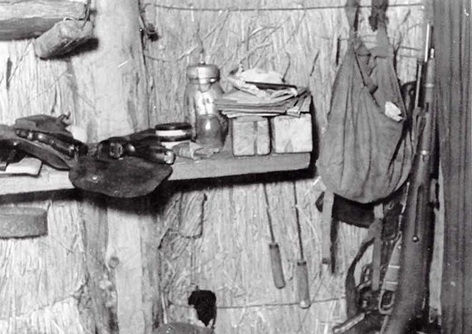 Wnętrze i wyposażenie bunkra, w którym ukrywał się ppor. Stanisław Marchewka "Ryba", znajdującego się w gospodarstwie Apolinarego Grabowskiego w Jeziorku k. Łomży. Zdjęcia wykonane przez funkcjonariuszy SB po zabiciu ppor. "Ryby", 3/4 marca 1957 r. (Archiwum IPN)