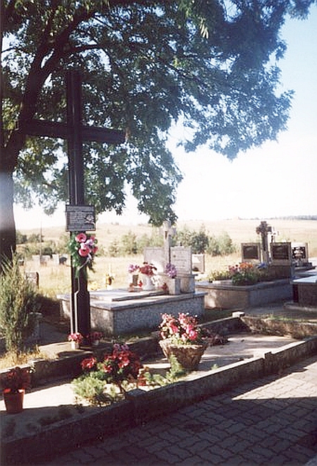 Tablica na krzyżu na cmentarzu w Lipowcu Kościelnym: