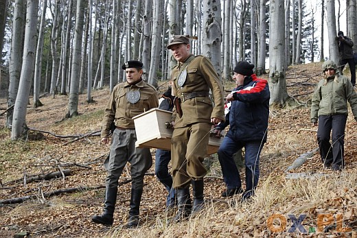 Szczątki plut. Edwarda Biesoka "Edka" wynoszą z lasu członkowie grupy rekonstrukcyjnej Narodowych Sił Zbrojnych.