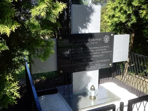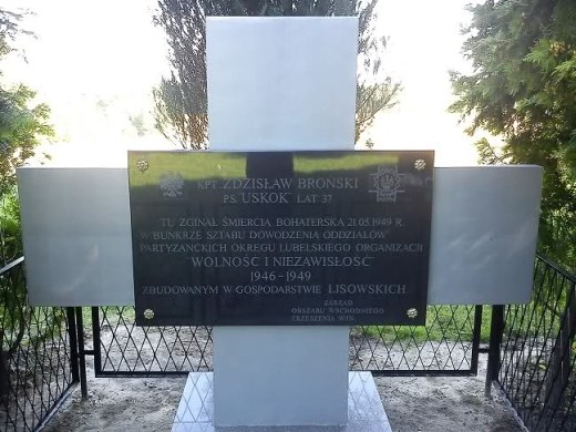 Pomnik ku czci kpt. Zdzisława Brońskiego „Uskoka” w Nowogrodzie, odnowiony w 2012 r. staraniem członków Narodowej Łęcznej i kibiców Górnika Łęczna.