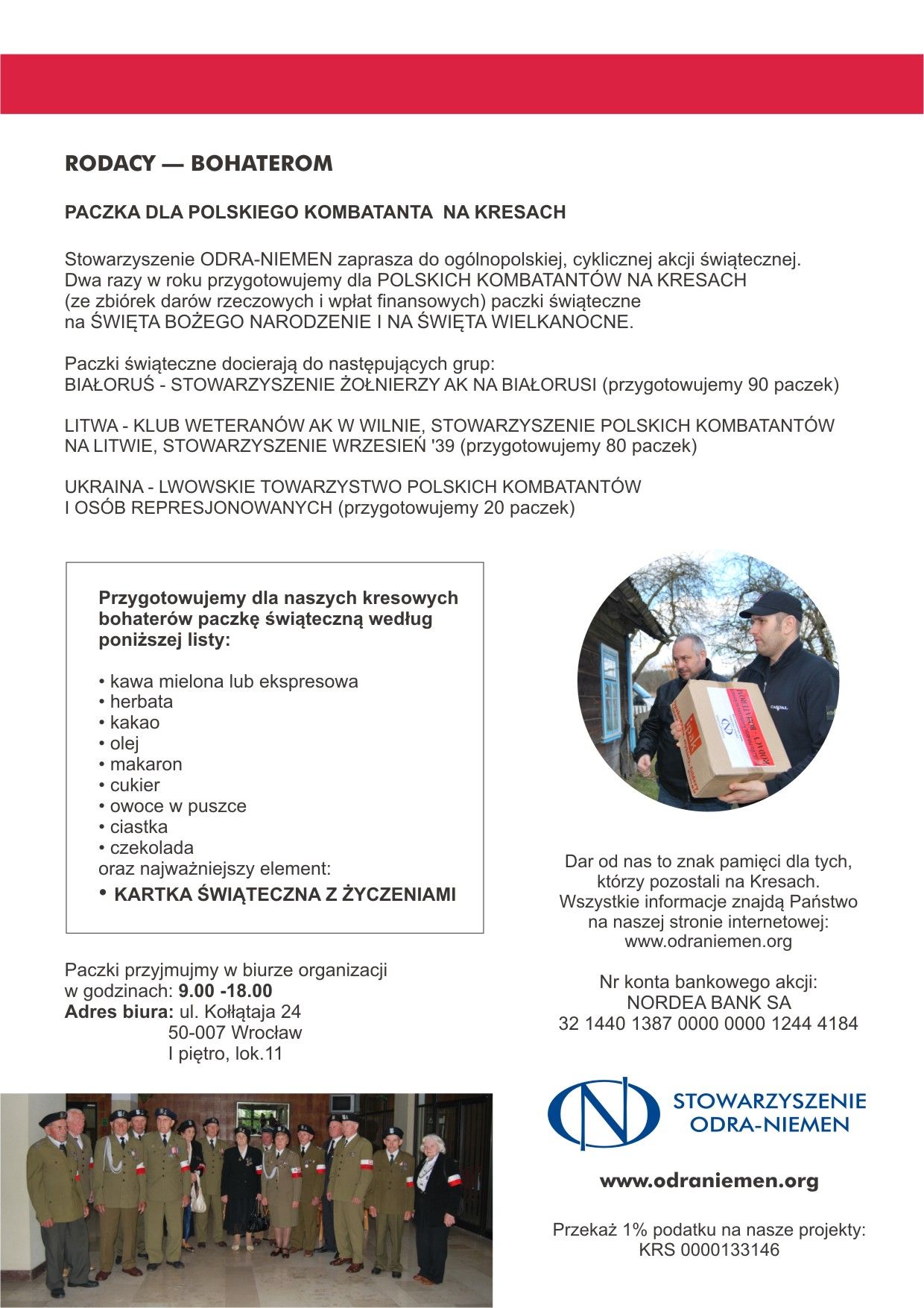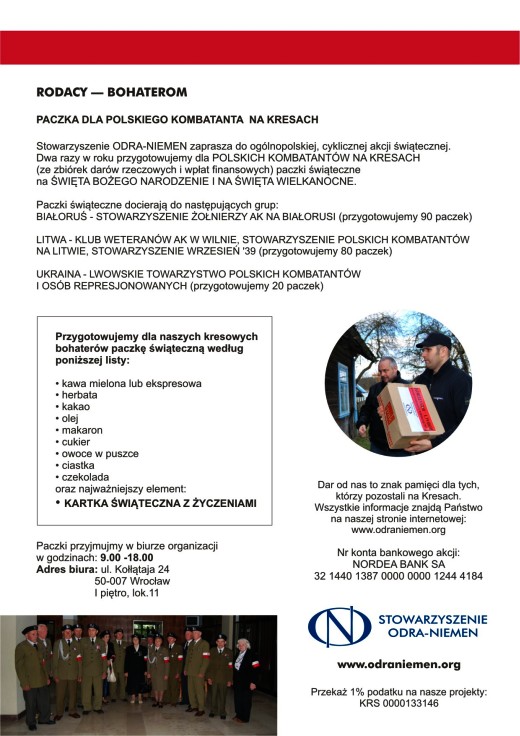Rusza kolejna edycja projektu "RODACY-BOHATEROM. Paczka dla polskiego Kombatanta na Kresach". Stowarzyszenie ODRA-NIEMEN zaprasza do ogólnopolskiej, cyklicznej akcji świątecznej.