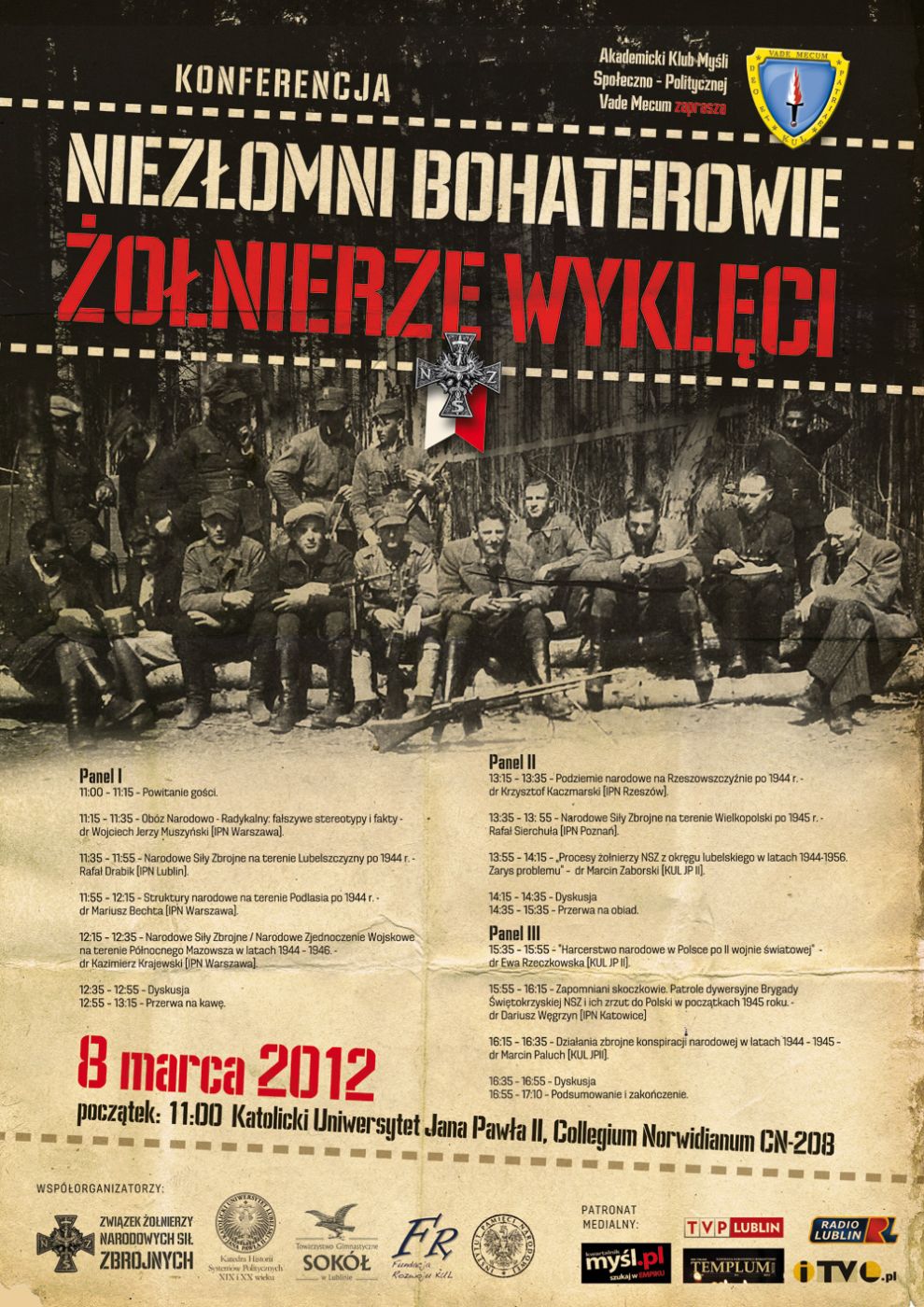 Współorganizatorzy: Katedra Historii Systemów Politycznych XIX i XX w., Związek Żołnierzy Narodowych Sił Zbrojnych, Fundacja Rozwoju KUL, Towarzystwo Gimnastyczne Sokół w Lublinie.