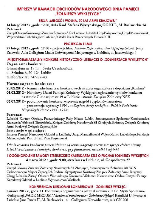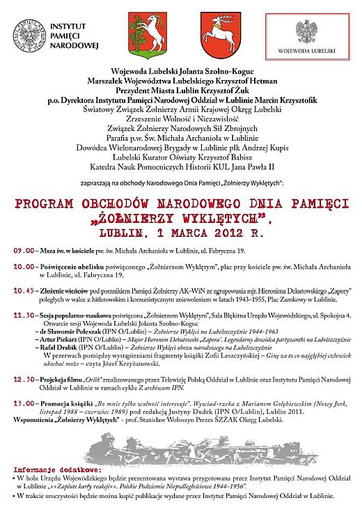 Lublin – obchody Dnia Pamięci "Żołnierzy Wyklętych" 26 lutego 2012 gregg71 LUBLIN – obchody Narodowego Dnia Pamięci "Żołnierzy Wyklętych" Strona główna> Post navigation Previous postNext post