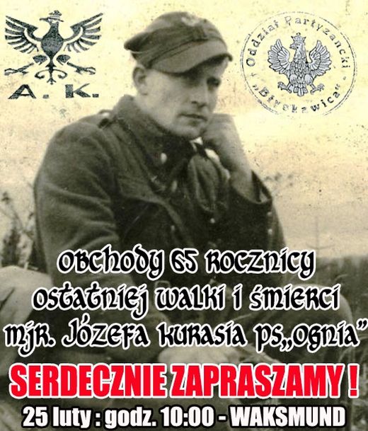 Dnia 25 lutego 2012 r. jak co roku w Waksmundzie odbędą się uroczystości związane z ostatnią walką i śmiercią mjr. Józefa Kurasia "Orła" vel "Ognia" i jego żołnierzy: Kazimierza Kurasia "Kruka" i Stanisława Srala "Zimnego", którzy 21 lutego 1947 r. zginęli wierni do końca swojemu dowódcy w nierównej walce z siłami komunistycznymi.
