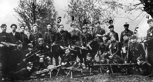 Drużyna st. sierż. Józefa Babicza "Żwirki" (siedzi pierwszy z prawej w górnym rzędzie). Podlasie, lato 1946 r.