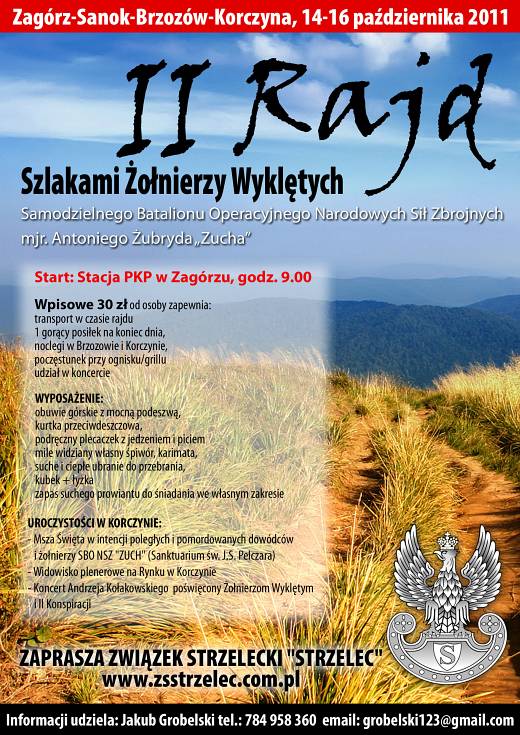 Związek Strzelecki "Strzelec" oraz Gmina Korczyna zapraszają w dniach 14-16 października 2011 r. do udziału w II Rajdzie Szlakiem Żołnierzy Wyklętych mjr. Antoniego Żubryda "Zucha".