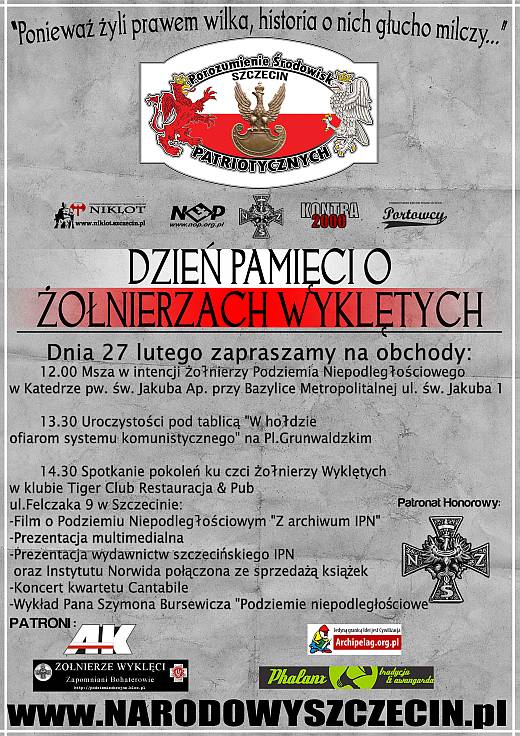 Święto "Wyklętych" w Szczecinie 20 lutego 2011 gregg71 Dzień Pamięci o Żołnierzach Wyklętych, Szczecin, 27 lutego 2011 r. Strona główna> Post navigation Previous postNext post