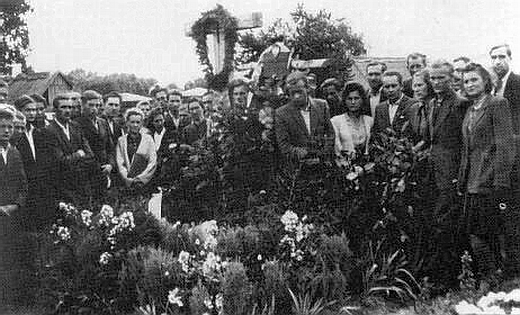Ekshumacja i pogrzeb ciał pomordowanych nad stawem Buksa w Rykach.