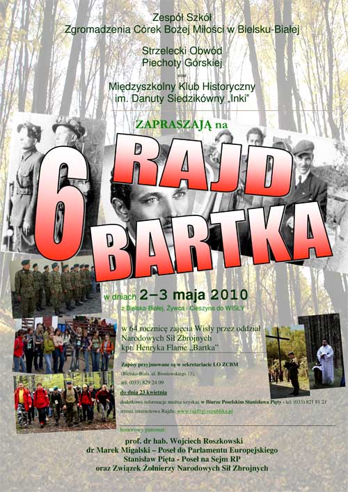 Celem rajdu jest propagowanie wśród młodzieży form aktywnego wypoczynku i zapoznanie uczestników z historią podziemia antykomunistycznego na Podbeskidziu. Rajd upamiętnia bohaterskich żołnierzy Narodowych Sił Zbrojnych dowodzonych przez kapitana Henryka Flame ps. "Bartek", którzy 3 maja 1946 roku zajęli Wisłę i przeprowadzili kilkugodzinną defiladę pododdziałów.
