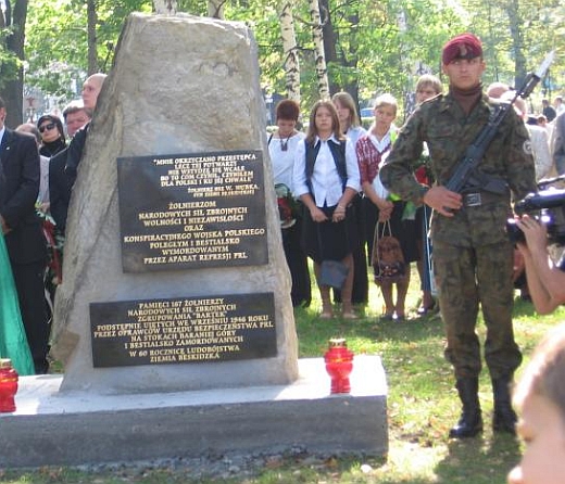 Żywiec, 24.09.2006 r. Odsłonięcie pomnika zamordowanych przez UB żołnierzy NSZ ze Zgrupowania kpt. Henryka Flame "Bartka".