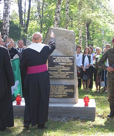 Poświęcenie pomnika żołnierzy NSZ "Bartka" podczas uroczystości w Żywcu.
