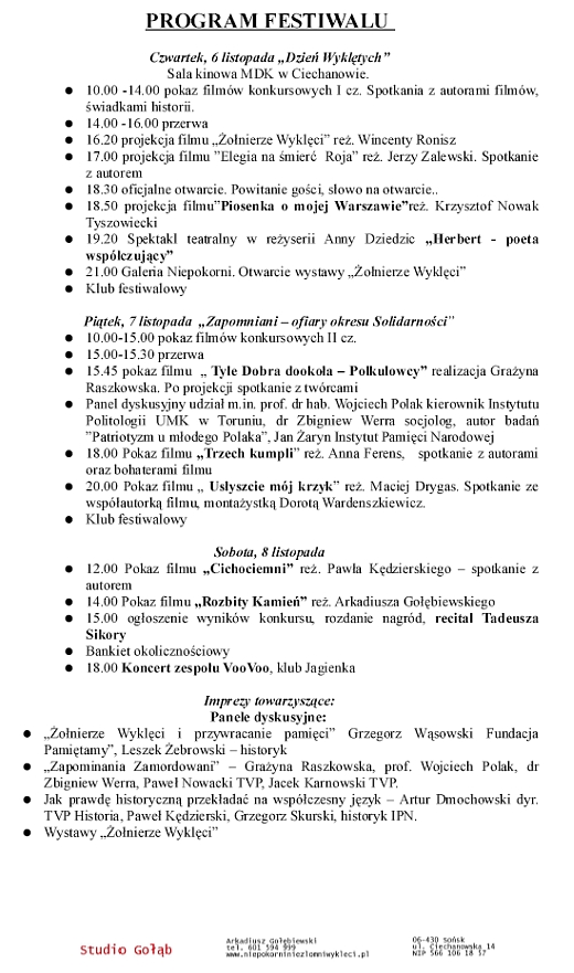 Festiwal Filmowy – PRZYWRACAMY PAMIĘĆ (Ciechanów, 6-8 XI 2008 r.)