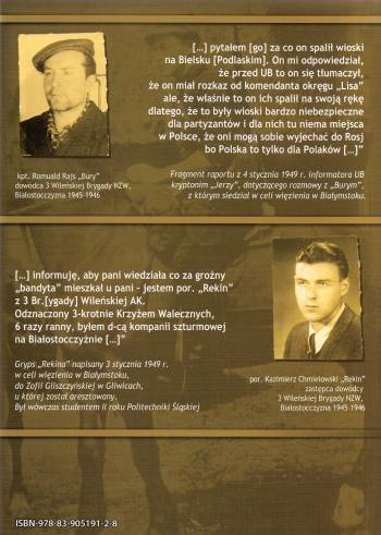 Monumentalna monografia (475 stron + 47 stron zdjęć) 3 Wileńskiej Brygady Narodowego Zjednoczenia Wojskowego, dowodzonej przez kpt. Romualda Rajsa ps. "Bury" i jego zastępcę por. Kazimierza Chmielowskiego ps. "Rekin", będąca owocem wieloletniej pracy historyka białostockiego oddziału IPN Jerzego Kułaka, autora wielu publikacji poświęconych antykomunistycznemu podziemu.